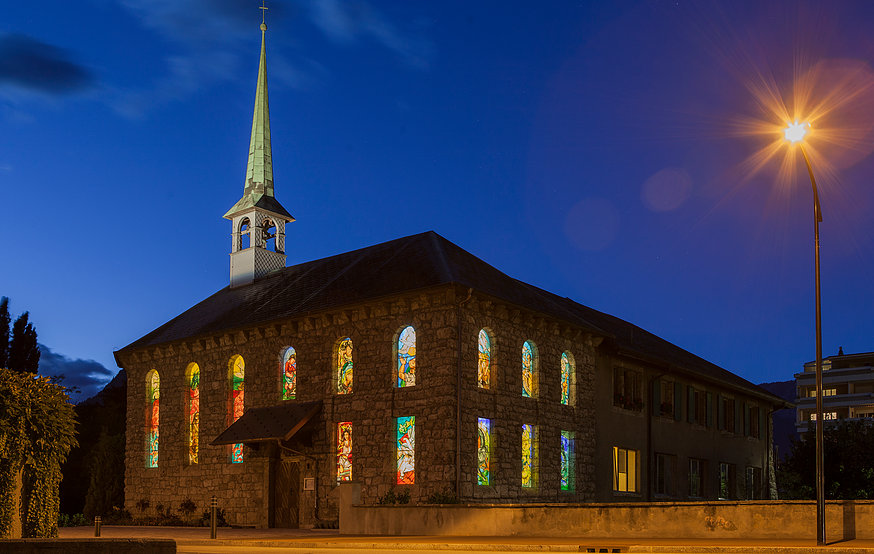 Le temple protestant de Martigny invite le visiteur à l'écoute et au recueillement à la lumière des vitraux remarquables de Hans Herni. Dans ce lieu, des concerts de musique classique sont régulièrement organisés pour offrir des temps particuliers entremêlant art et spiritualité.