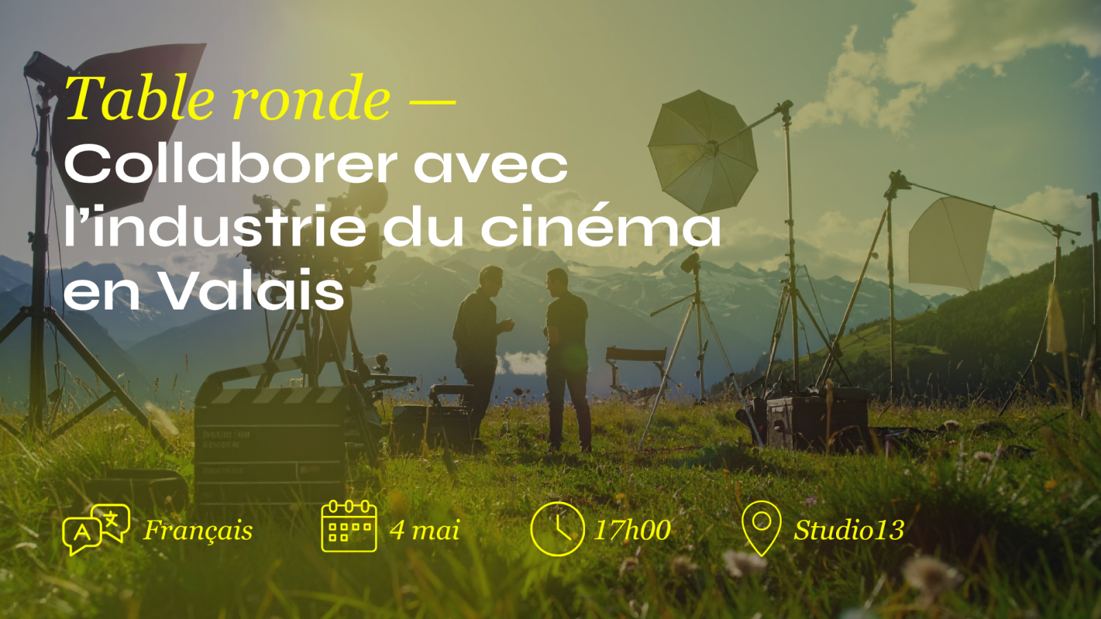 PRISM, en collaboration avec l’association Valais Films et la Valais Film Commission, vous propose une table ronde pour découvrir comment les entreprises locales peuvent collaborer avec des productions cinématographiques. La rencontre aura lieu le 4 mai 2026 à 17h au Studio13 à Sion.