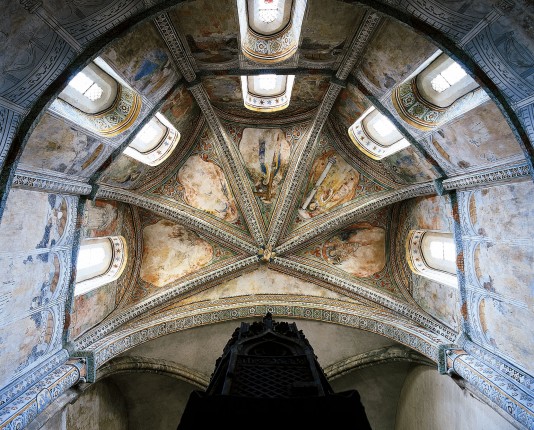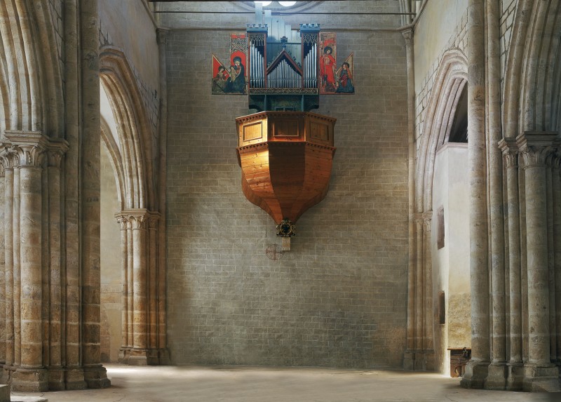 L’église fortifiée domine toute la colline. Construite entre la fin du XIe siècle et le milieu du XIIIe siècle, elle est marquée par le passage du style roman au style gothique. A l’intérieur se trouvent le plus ancien orgue encore jouable au monde et des œuvres d’art remarquables : des chapiteaux historiés de la période romane, un jubé, rare exemple du XIIIe siècle en Europe, de magnifiques peintures murales du XVe siècle, des stalles baroques finement sculptées… ainsi que la salle du Trésor.