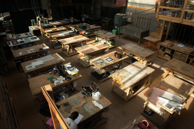 Ancien atelier de construction métallique situé en plein centre ville, cet espace est quotidiennement dévolu à la pratique et l'enseignement du travail du verre (vitrail et techniques du verre), de la peinture, du dessin d'académie et d'observation.