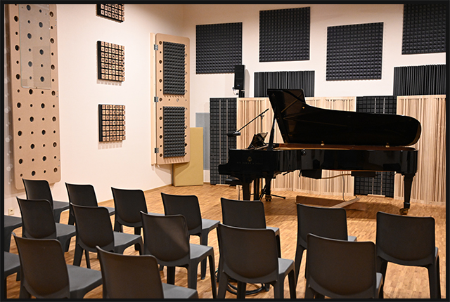 La salle principale permet l'accueil de public pour des concerts streamés et enregistrés tant en audio qu'en visuel.