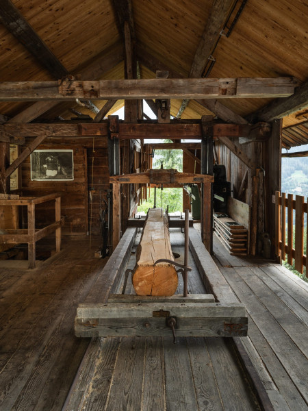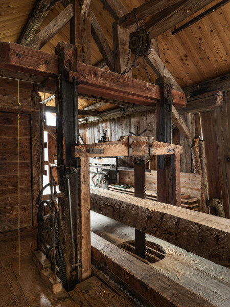 Bâtiment rural classé monument historique, la Scie et Moulins de Sarreyer c’est une trilogie unique en Valais. Une roue à aube placée à la verticale crée un système ingénieux actionné par la force de l’eau et la gravité. Une seule roue à godets actionne la scie, deux moulins à farine et un broyeur à pommes.